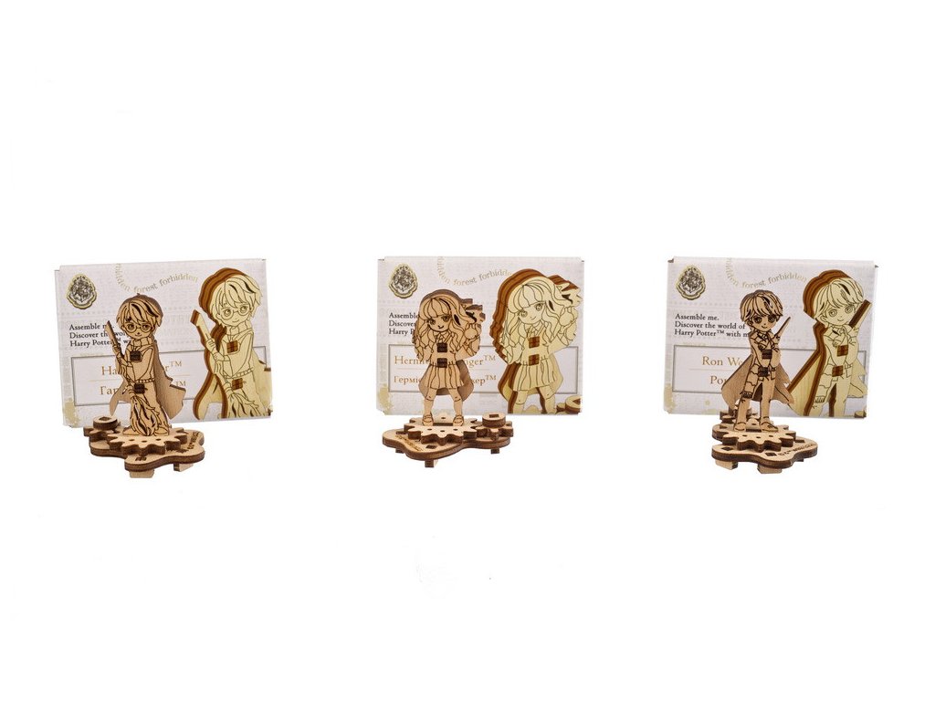 Modely z kolekce Adventní kalendář Harry Potter™ jsou vyrobeny z atraktivního přírodního kompozitního dřeva a obsahují figurky Harryho Pottera™, Hermiony Grangerové™ a Ronalda Weasleyho™, které se otáčejí na otáčecích ozubených plošinách, stejně jako Ohnivý pohár™. Když budete otevírat okénka jedno po druhém, budete si moci sestavit ikonické předměty Harryho Pottera™, jako jsou rotující odznaky se znaky školy čar a kouzel v Bradavicích™ a jejích čtyř domů - Gryffindor™, Hufflepuff™, Ravenclaw™ a Slytherin™. Tyto odznaky a mnoho dalších předmětů, které si postavíte, jsou U-fidgety: zábavné malé mechanické hračky s otáčecími ozubenými koly, které zaměstnají malé ruce. Sestavení je zábavné a snadné a zvládnete ho během několika minut.